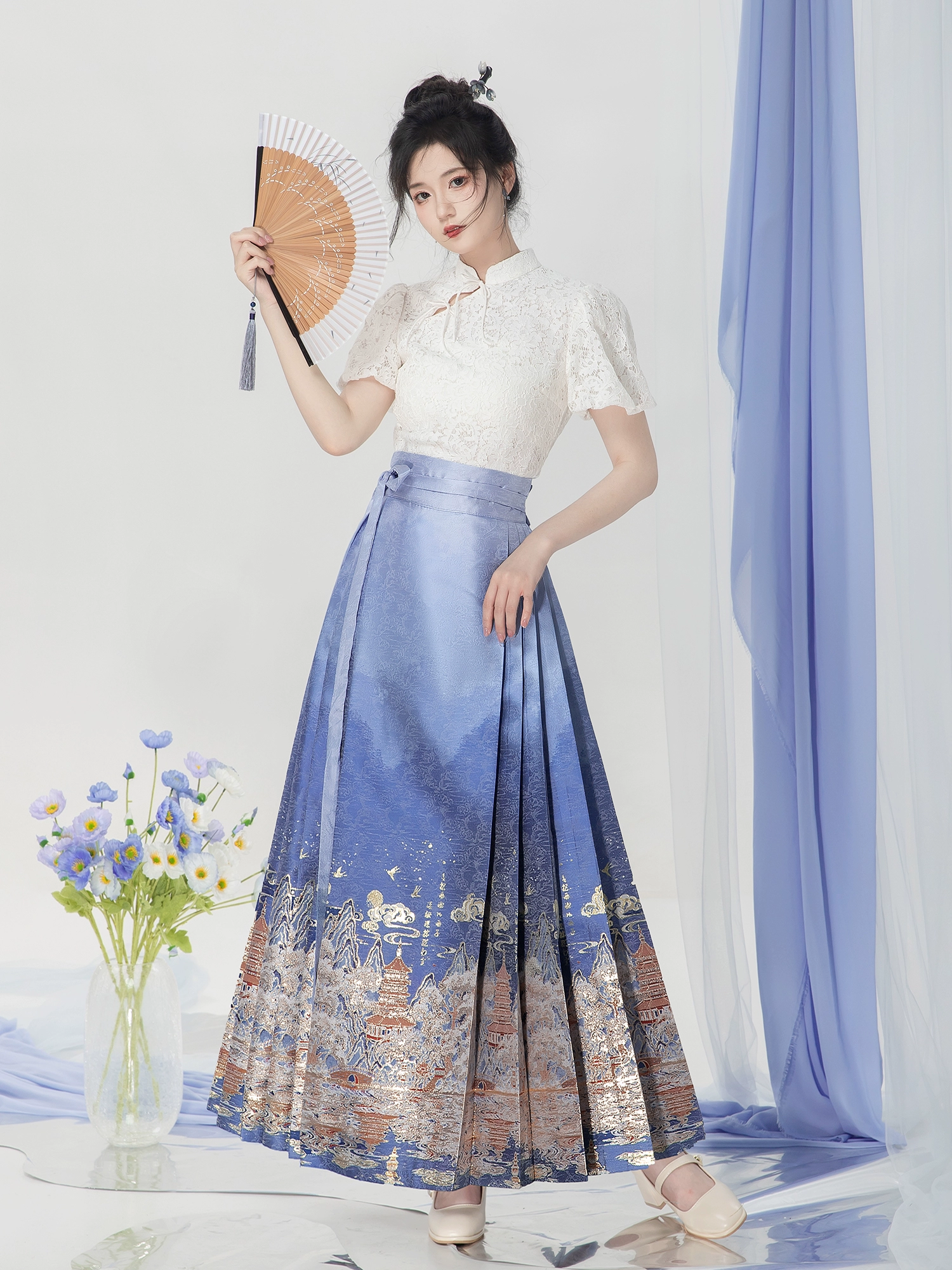 HCFZ226 制汉服新中式仿螺钿织金妆花马面裙