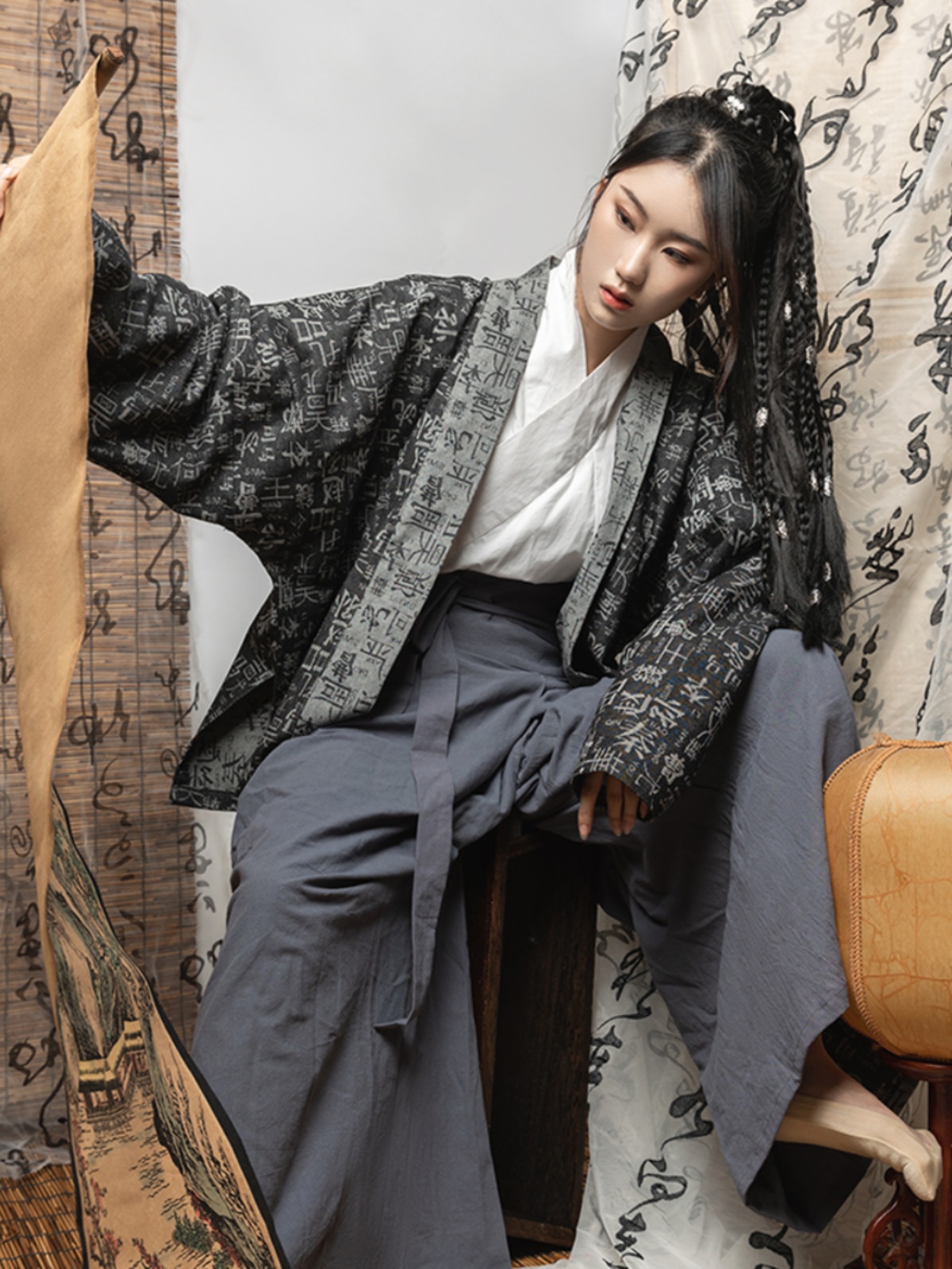 HCFZ257 书法提花棉飞机袖短褙子宋黑色宋制古装