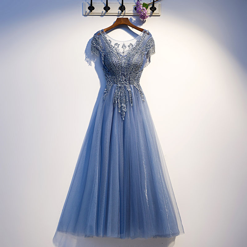 NSDLF122 蓝色泡泡袖气质礼服