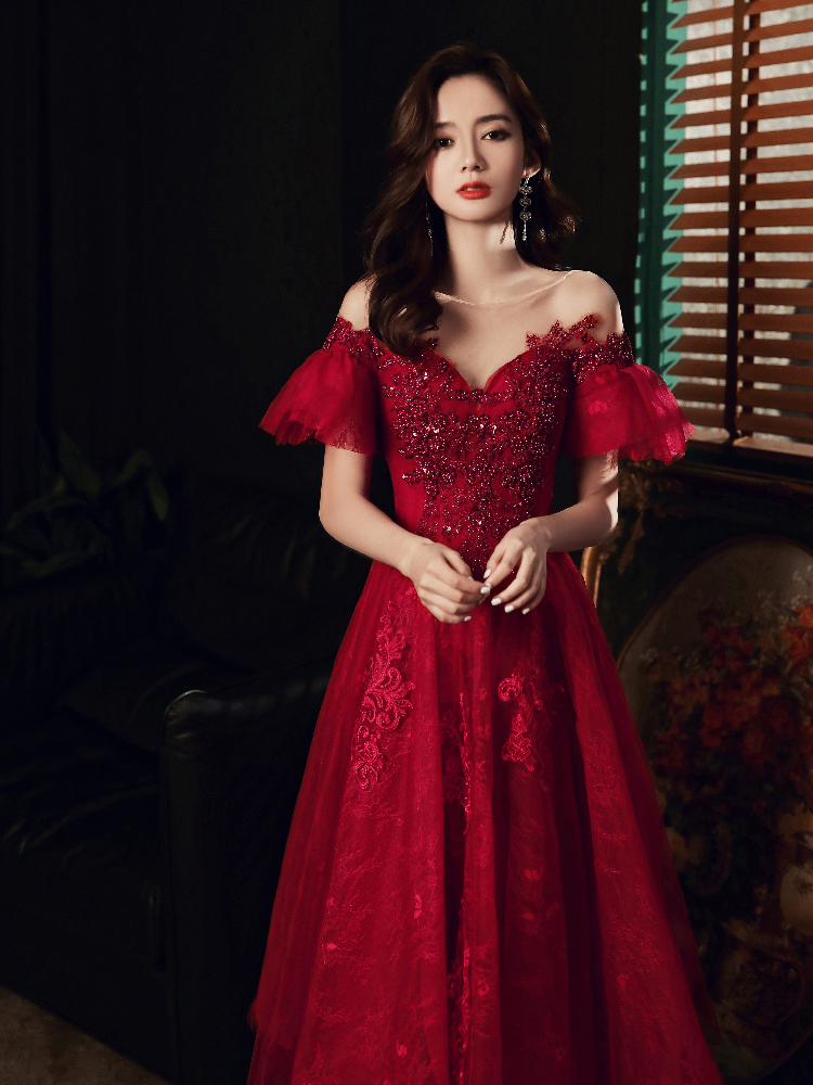 NSDLF121 酒红色蓬蓬裙晚礼服