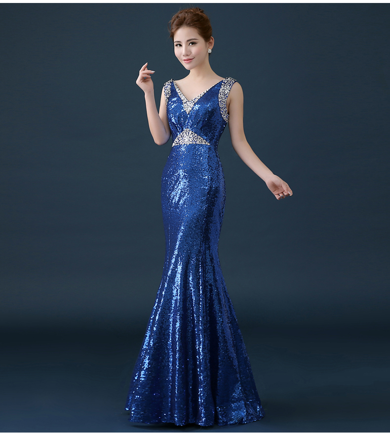 NSCLF077 蓝灰色挂脖鱼尾长礼服