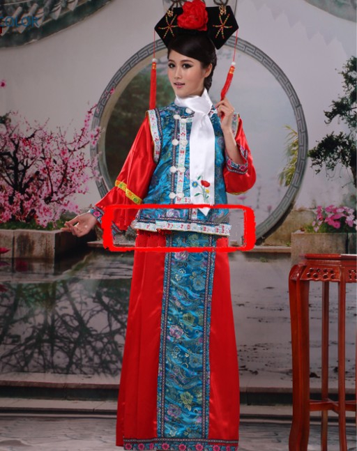 QCFZ007 清朝服装红大褂蓝马甲阿哥服